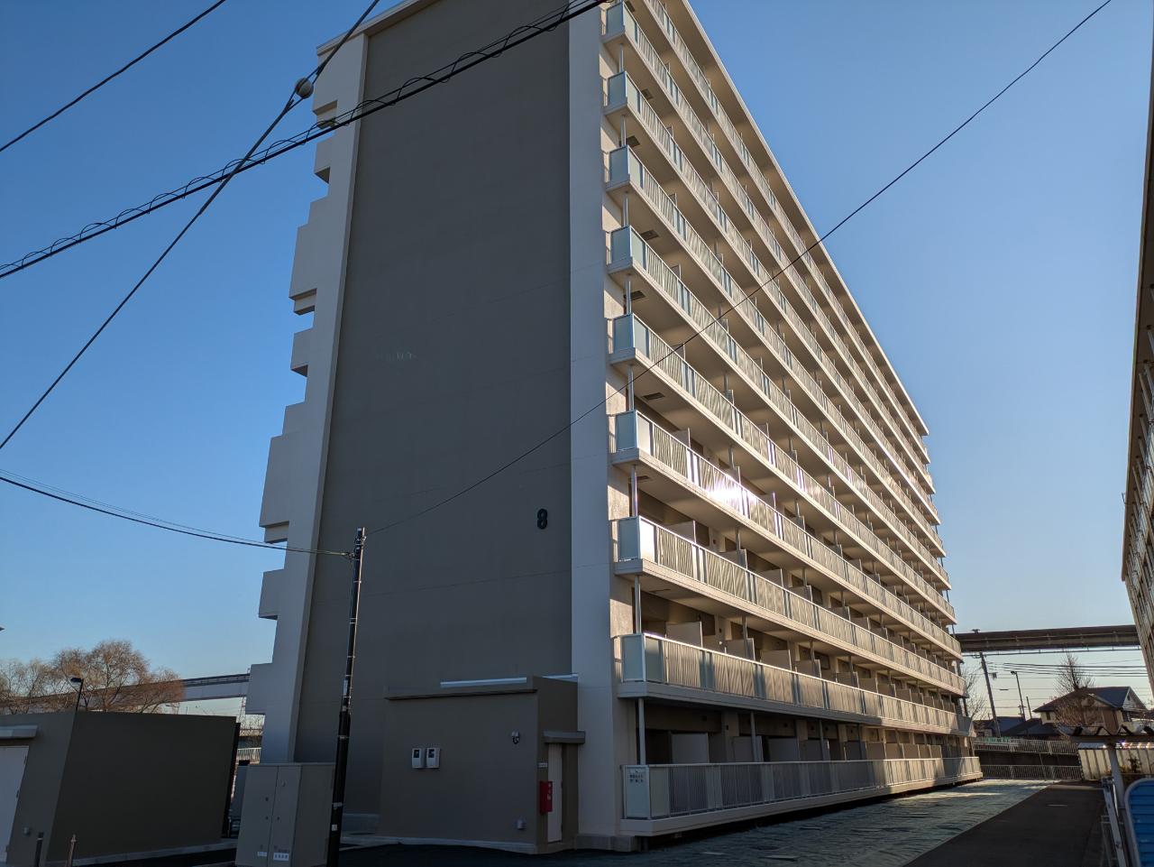 都営住宅の建て替え二期工事。周辺の散歩コースになる河川敷に面し、目立った中層住宅として完成しました。
